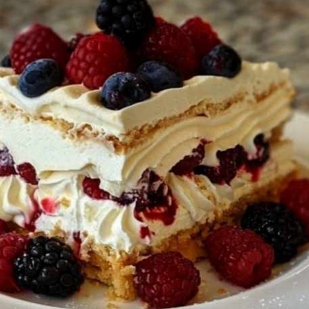 The Lemon Berry Ritz Icebox Cake is a fascinating gastronomic adventure that combines crunchy Ritz crackers, sweet mixed berries, and tart lemon zest in a perfect balance. An homage to the timeless icebox cakes that were popular in early 20th-century America, this dish is a delightfully simple dessert that freezes to perfection the night before. This recipe guarantees joy with every mouthful, making it perfect for those warm months when baking doesn't seem attractive or when you need a dessert that is easy to make for parties.