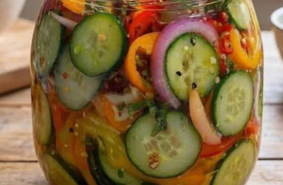 INTRODUCTIONThis quick and easy anti-inflammatory pickled salad is fresh, crunchy, and full of flavor. Made with simple vegetables and a light, tangy brine, it’s perfect for beginners and comes together in minutes—no cooking required. It’s a healthy side dish that keeps well in the fridge and gets better with time.✨ If you love simple, healthy recipes like this, stay connected so you don’t miss the next one! ✨Ingredients2 large cucumbers, thinly sliced1 red onion, thinly sliced1–2 bell peppers (any color), thinly sliced2 cloves garlic, minced (optional)1 tsp turmeric powder (anti-inflammatory)1 tsp mustard seeds or black seeds (optional)½ tsp black pepper1 tsp sea salt (or to taste)½ cup apple cider vinegar¼ cup olive oil¼ cup water1–2 tbsp honey or maple syrup (optional, for balance)Fresh herbs (parsley or cilantro), choppedInstructionsPrepare the vegetablesThinly slice cucumbers, onion, and bell peppers.Place them in a clean glass jar or bowl.Make the pickling liquidIn a small bowl, whisk together vinegar, olive oil, water, salt, honey (if using), turmeric, black pepper, and seeds.CombinePour the pickling liquid over the vegetables.Add garlic and fresh herbs. Mix well to coat everything evenly.Rest & pickleCover and let sit for 20–30 minutes at room temperature, or refrigerate for 1–2 hours for deeper flavor.ServeEnjoy chilled as a refreshing side, topping for grilled dishes, or healthy snack.