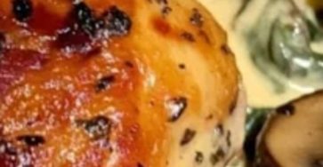Smothered Chicken with Creamed Spinach, Bacon, and Mushrooms Recipe