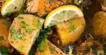 Ingredients: – 4 bone-in, skin-on chicken thighs– 1 pound baby potatoes, halved– 1 lemon, sliced– 4 cloves garlic, minced– 1/4…