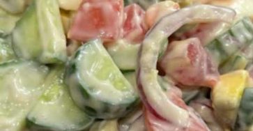 Ingredients: Two big cucumbers, thinly sliced; one big red onion, thinly sliced; three big tomatoes, sliced or wedgesOne fourth cup…
