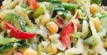 Ingredients: 300g (about 1/2) cabbage, shredded2 cucumbers, sliced1 red bell pepper, sliced1 onion, finely chopped50g chickpeas2 cloves garlic, minced3-4 tablespoons…
