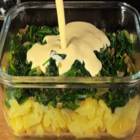 Cover the potatoes with the spinach and onion mixture.