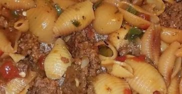 IngredientsFor 4 people:° 8 ounces medium macaroni shells° 1 tablespoon olive oil° 1 pound ground beef°1/2 medium onion, cut into…