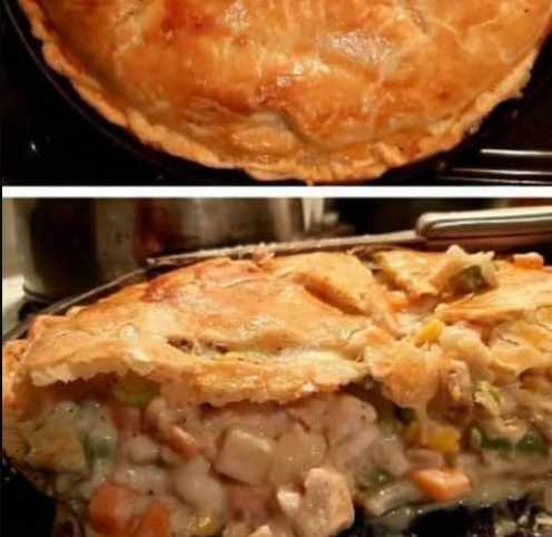 Pour into a shallow 2-quart casserole dish and top with pie crusts.