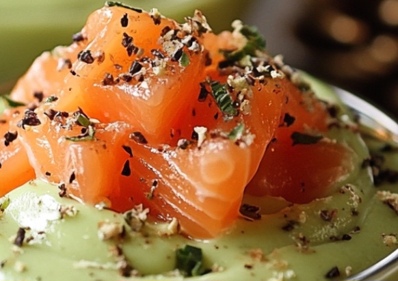 Celebrate the holidays with a dish that’s as elegant as it is delicious—Christmas Mousse with Avocado and Smoked Salmon. This creamy and vibrant appetizer combines the velvety texture of ripe avocados with the rich, smoky flavor of salmon, creating a delightful balance of freshness and indulgence. Perfectly suited for festive gatherings, this mousse not only adds a sophisticated touch to your holiday table but is also quick and simple to prepare. Whether served as an appetizer or part of a luxurious brunch spread, this dish is sure to impress your guests and elevate your holiday menu.