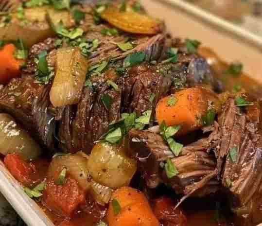 – Garnish with chopped fresh parsley. Enjoy your classic pot roast with vegetables, perfect for a comforting family meal!