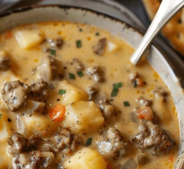 This soup is easy to prepare, making it a great option for busy weeknights. It’s also versatile—you can customize it with different vegetables, cheeses, or spices to suit your taste. Whether served as a main course with crusty bread or as a starter to a larger meal, Creamy Hamburger Potato Soup is sure to be a hit with the whole family.