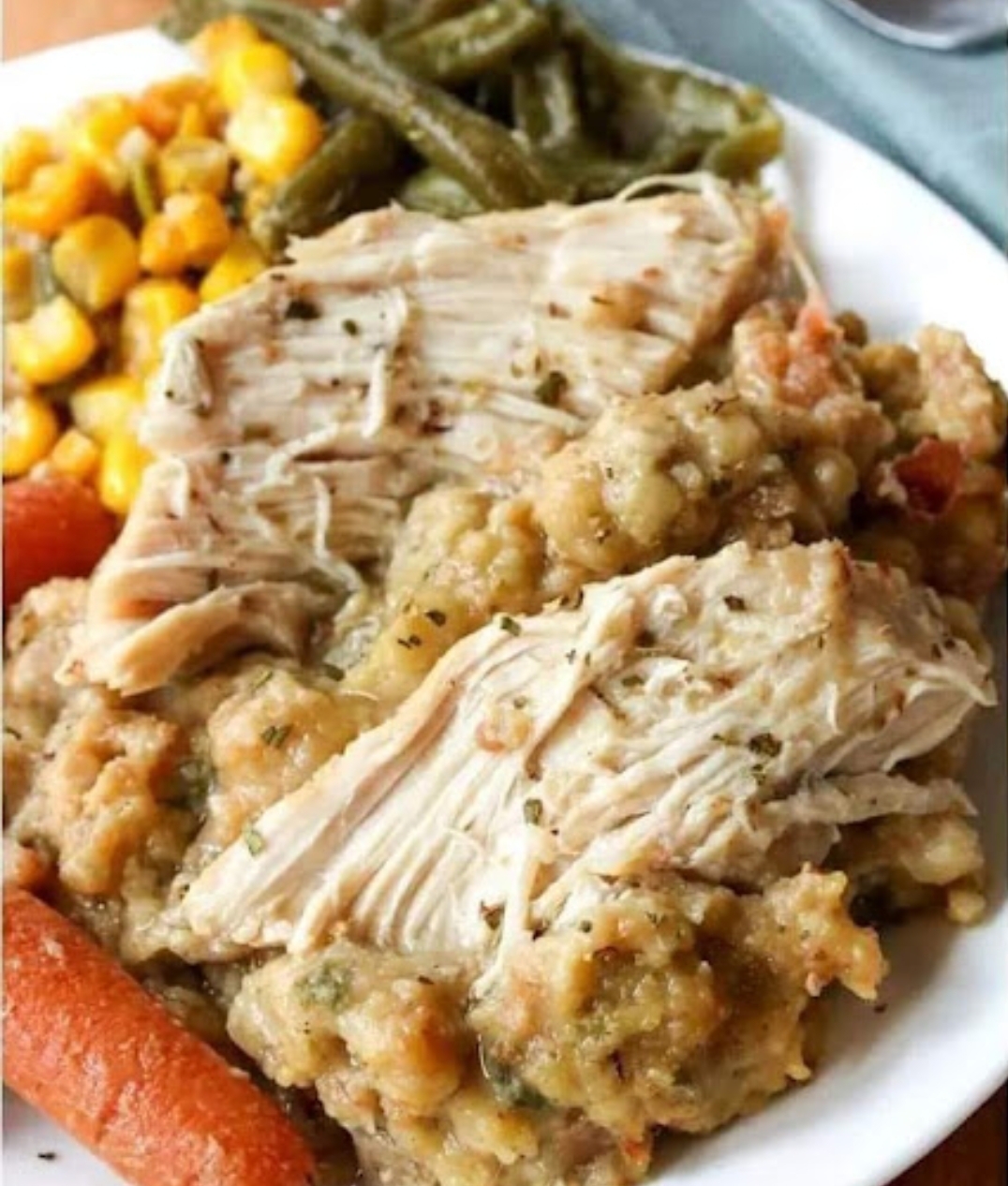 Easy sticky and delicious! This chicken and this farce is incredible! I love adding sausages onions celery and even dried cranberries! I serve this with whipped potatoes prepared on the stove. Try you will not regret it.