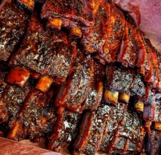 Boil ribs for about 1 hour. This step is the secret to making good ribs. Preheat oven 300°F (150°C). In a bowl, mix the ingredients to make the sauce. Brush the ribs well with the sauce. Bake for about 40 minutes on each side. Brush the ribs frequently with the sauce.