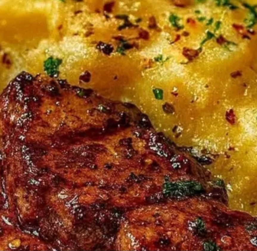 - Serve: Place the cheesy smashed potatoes on a serving platter. Top with the garlic butter steak bites. Spoon any remaining butter sauce from the skillet over the dish. Garnish with fresh chives or parsley if desired.