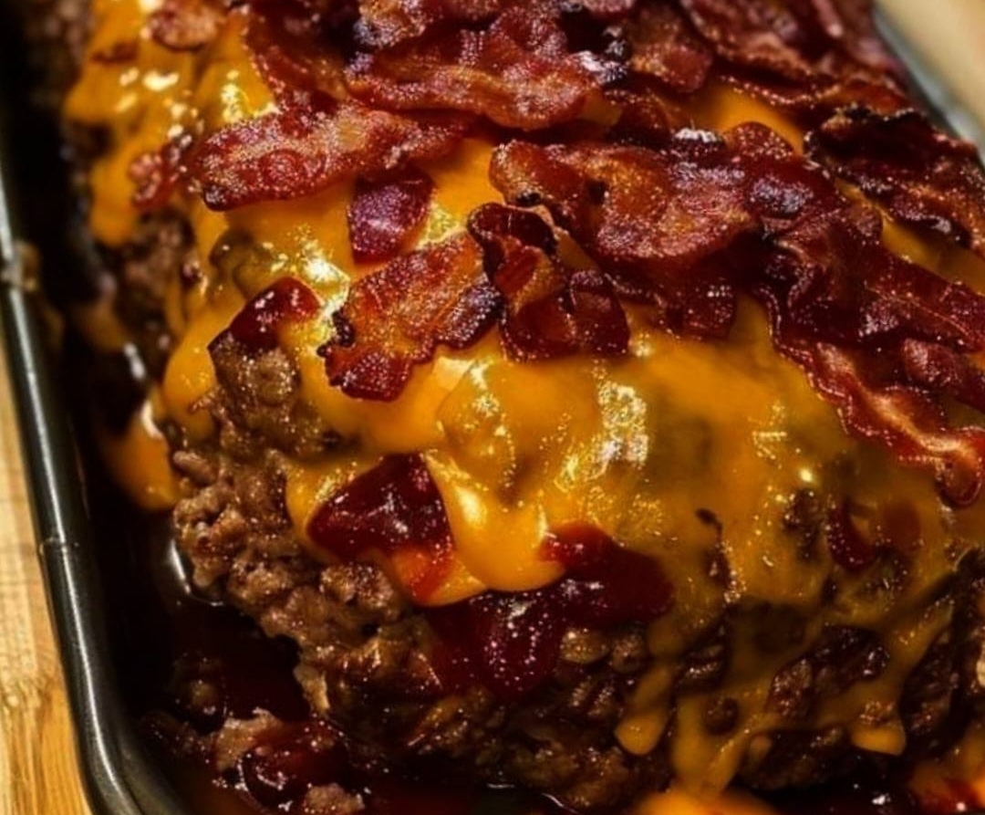Preheat the Oven:Preheat your oven to 375°F (190°C). Grease a 9×5-inch loaf pan and set it aside.Prepare the Meatloaf Mixture:In a large mixing bowl, combine the ground beef, cooked and crumbled bacon, shredded cheddar cheese, bread crumbs, ketchup, mustard, Worcestershire sauce, chopped onion, minced garlic, beaten eggs, salt, and pepper. Mix until well combined.Form the Meatloaf:Transfer the meatloaf mixture into the prepared loaf pan, pressing it down gently and shaping it into a loaf shape.Make the Topping:In a small bowl, whisk together the ketchup, mustard, and brown sugar to make the topping glaze.Add the Topping:Spread the topping glaze evenly over the top of the meatloaf.Bake:Place the loaf pan in the preheated oven and bake for 60-75 minutes, or until the meatloaf is cooked through and the top is golden brown.Rest and Serve:Remove the meatloaf from the oven and let it rest for 5-10 minutes before slicing and serving.