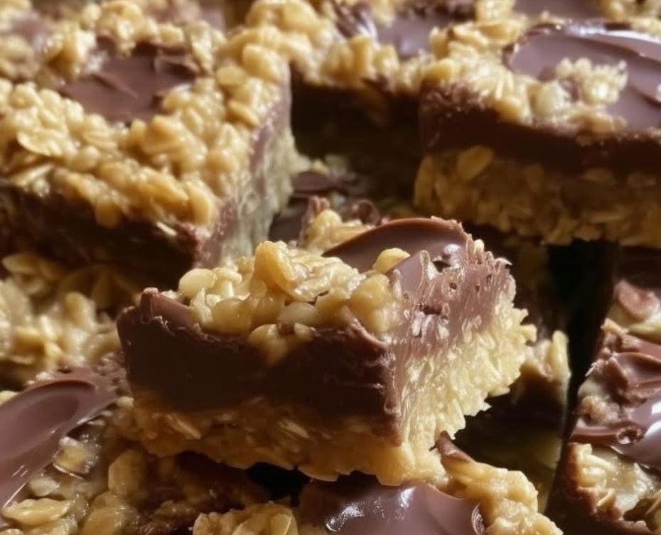 These bars are rich but wholesome, with oats, chocolate, and a touch of peanut butter for flavor and texture. They’re naturally sweet, require no baking, and are ready in under 30 minutes (plus chilling time).🍫 NO BAKE CHOCOLATE OAT BARS RECIPE🕒 Prep Time:15 minutes⏱️ Chill Time:1–2 hours🍽️ Total Time:1 hour 15 minutes🍴 Yield:16 bars🌟 Why You’ll Love This Recipe🍪 No bake: Minimal effort with maximum flavor.🥣 Healthy-ish snack: Packed with oats and peanut butter for texture and nutrition.🍫 Rich chocolate flavor: Sweet, fudgy, and deeply satisfying.🍳 Kid-friendly & versatile: Great for lunchboxes, snacks, or dessert.This recipe makes the perfect make-ahead treat — easy to store, portion, and enjoy anytime.🧂 IngredientsDry Ingredients:3 cups old-fashioned rolled oats1 cup shredded unsweetened coconut (optional, for texture)½ cup mini chocolate chips or chopped dark chocolate½ cup chopped nuts (optional: walnuts, pecans, or almonds)Wet Ingredients:1 cup creamy peanut butter (or almond butter)½ cup unsalted butter1 cup packed brown sugar½ cup honey (or maple syrup for vegan option)1 teaspoon vanilla extract¼ teaspoon saltChocolate Topping:1 cup semi-sweet chocolate chips2 tablespoons peanut butter🔪 Step-by-Step InstructionsStep 1: Prepare the PanLine a 9×13-inch baking pan with parchment paper, leaving extra hanging over edges for easy removal.Step 2: Combine Dry IngredientsIn a large mixing bowl, combine:Rolled oatsShredded coconutMini chocolate chipsChopped nuts (if using)Mix well and set aside.Step 3: Make the Wet MixtureIn a medium saucepan over medium heat, combine:Peanut butterUnsalted butterBrown sugarHoneyStir constantly until the mixture comes to a gentle boil and sugar dissolves — about 2–3 minutes.Remove from heat and stir in vanilla extract and salt.Step 4: Combine Wet & Dry IngredientsPour the warm peanut butter mixture over the oat mixture.Stir well until all oats are evenly coated and sticky.Press the mixture firmly into the prepared pan using the back of a spatula or a piece of parchment paper to press evenly.Step 5: Prepare the Chocolate ToppingIn a microwave-safe bowl, combine:Semi-sweet chocolate chipsPeanut butterMicrowave in 30-second intervals, stirring between, until smooth and fully melted.Pour the chocolate mixture over the oat base and spread evenly with a spatula.Step 6: Chill Until FirmCover the pan loosely and refrigerate for 1–2 hours until the bars are firm enough to cut.Step 7: Slice & ServeLift the bars from the pan using the parchment paper edges.Place on a cutting board and slice into 16 squares or bars.Serve chilled or at room temperature.🍽 Serving SuggestionsSnack: Pair with a glass of milk for a quick energy boost.Dessert: Serve with fresh berries or a dollop of whipped cream.Lunchbox treat: Individually wrap bars for easy on-the-go snacks.Party platter: Cut into small squares and serve as bite-size treats.🧊 Storage TipsRefrigerate: Store in an airtight container for up to 7 days.Freeze: Wrap bars individually and freeze up to 3 months. Thaw at room temperature or in the fridge.Room temperature: Keep in an airtight container for up to 3 days (best chilled for structure).💡 Expert TipsPress firmly. Ensures bars hold together and don’t crumble.Mix-in variety. Add dried fruit, seeds, or protein powder for extra flavor and nutrition.Chocolate topping: Try dark chocolate for richer flavor or white chocolate for a twist.Nut-free option: Use sunflower seed butter or soy nut butter.Cut with a warm knife. Dip knife in hot water and wipe before slicing to avoid crumbling.🧁 VariationsNutella Oat Bars: Replace peanut butter with Nutella for a hazelnut twist.Trail Mix Bars: Add dried cranberries, raisins, and sunflower seeds.Protein Bars: Stir in protein powder for a post-workout snack.Mint Chocolate Bars: Add peppermint extract and use dark chocolate chips.Salted Caramel Bars: Drizzle caramel sauce over the chocolate before chilling.🧮 Nutrition (Approximate per bar, based on 16 bars)Calories: 210Fat: 10 gSaturated Fat: 4 gCarbohydrates: 27 gFiber: 3 gProtein: 5 gSugar: 15 g📜 SEO Keywordsno bake chocolate oat bars, easy no bake oat bars, chocolate peanut butter oat bars, healthy no bake bars, homemade no bake bars, easy oat bar recipe, no bake dessert recipes, chocolate oat squares, energy bars, make ahead oat bars❤️ Final ThoughtsThese No Bake Chocolate Oat Bars are quick, versatile, and crowd-pleasing — perfect for when you want a sweet treat without heating the oven. Rich chocolate, chewy oats, and peanut butter make them addictive.They’re great for meal prep, snacks, lunchbox treats, and dessert. Once you make these, they’ll become your go-to no-bake bar recipe. 🍫💛