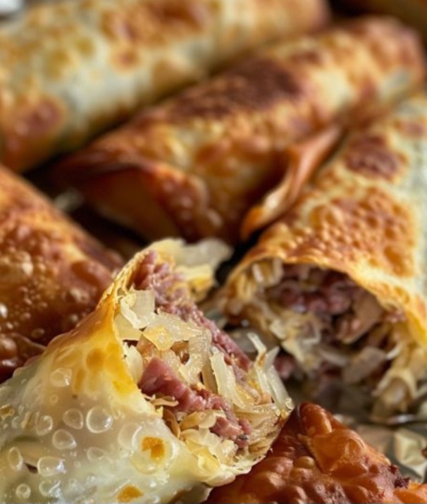 Ingredients: 8 egg roll wrappers 1/2 pound deli-sliced corned beef, roughly chopped 1 cup sauerkraut, drained and patted dry 1…