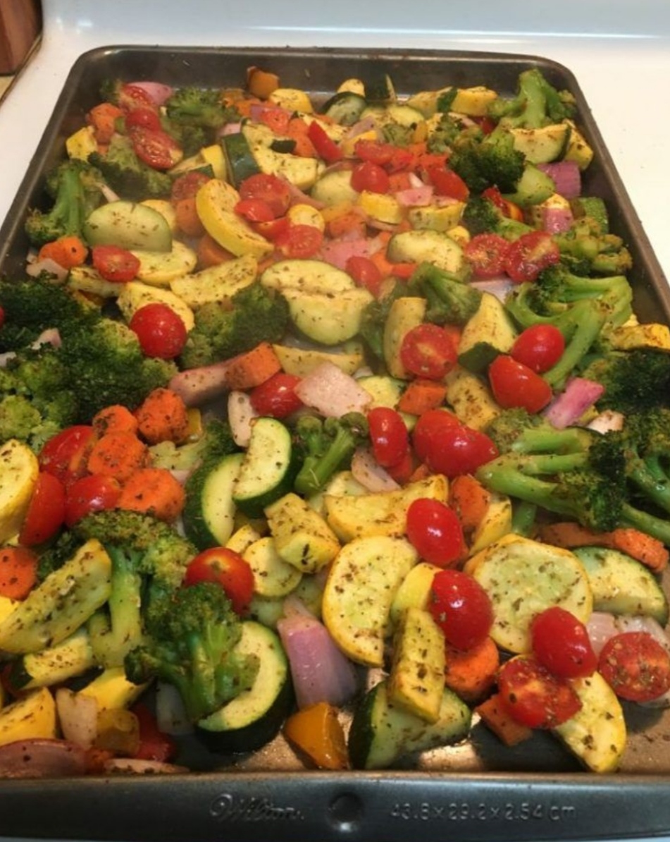 Prepare the oven and preheat to 200 degrees C or 400 degrees F. On a 13-inch baking sheet with a rim, add bell peppers, zucchini, broccoli, carrots, and red onion.Drizzle olive oil on top of the mixed veggies.Sprinkle Italian seasoning, pepper, garlic, and salt. Toss everything until well blended.Move the mixed veggies inside the preheated oven and roast for about 15 minutes.