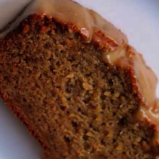 - Transfer batter to the prepared loaf pan and bake for 55-60 minutes or until an inserted toothpick comes out clean. While bread is cooling, make the glaze.