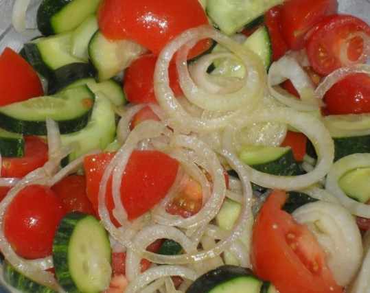 This lovely Cucumber Tomato Salad and Dressing Recipe is perfect for a casual dinner night or to take along to a potluck or picnic. This delicious, easy salad recipe is full of fresh cucumbers, tomatoes, and basil drizzled with a simple balsamic and oil dressing. You can serve this cucumber tomato salad with whatever main dish you are serving whether it be with chicken, a sandwich or a steak dinner. This salad is even better when everything is in season. You can use whatever mix of tomatoes you like. This salad recipe will keep nicely in the fridge for up to 24 hours. Some of the ingredients in this salad recipe include tomatoes, English cucumbers, basil leaves, olive oil and balsamic vinegar. Fresh ingredients make this salad recipe one that you will want to make on a regular basis, full of color and flavor it’s sure to be a favorite. Some balsamic vinegars have been aged for more than 100 years. It is this aging process that makes true balsamic vinegar from Modena in Northern Italy so very expensive. Once you try balsamic vinegar, it is sure to become a staple in your kitchen. You can make a simple salad dressing by drizzling a bit of olive oil and balsamic vinegar directly onto your salad.