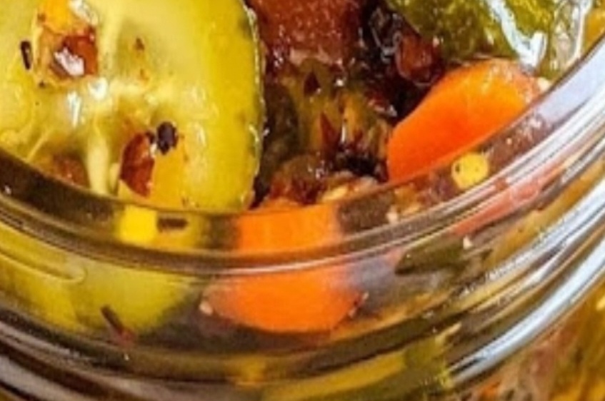 Versez délicatement la saumure chaude sur les légumes et les épices dans le bocal, en veillant à ce que tout soit complètement immergé. Vous devrez peut-être appuyer sur les légumes avec une cuillère pour éliminer les bulles d’air.