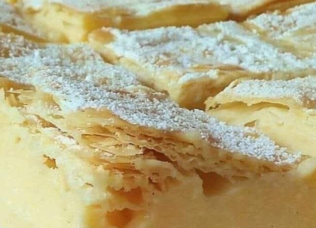 Description: Indulge in these creamy and decadent Vanilla Custard Bars, where smooth custard is layered between delicate, flaky pastry. Topped with a light dusting of powdered sugar, these bars are the perfect balance of rich flavors and texture, making them an irresistible treat for any occasion. Whether served at a family gathering or enjoyed as a personal treat, these bars will satisfy every sweet tooth.Ingredients:1 1/2 cups whole milk1 1/2 cups heavy cream1/2 cup granulated sugar1 teaspoon vanilla extract6 large eggs1/4 cup all-purpose flour1 sheet of puff pastry, thawedPowdered sugar for dustingInstructions:Prepare the custard: In a medium saucepan, combine whole milk, heavy cream, sugar, and vanilla extract. Heat over medium heat, stirring occasionally, until it starts to steam (but not boil). In a separate bowl, whisk the eggs and flour together until smooth. Gradually pour the hot milk mixture into the egg mixture while whisking continuously to temper the eggs.Cook the custard: Return the mixture to the saucepan and cook over low heat, stirring constantly, until it thickens to a custard-like consistency. Remove from heat and set aside to cool.Assemble the bars: Preheat your oven to 350°F (175°C). Roll out the puff pastry and fit it into the bottom of a baking dish. Pour the custard mixture over the pastry and spread it evenly. Bake for 25-30 minutes or until the custard is set and golden brown on top.Cool and serve: Allow the bars to cool completely. Once cooled, dust with powdered sugar before cutting into squares.Serving Suggestions:Serve these Vanilla Custard Bars as a light dessert after dinner or at afternoon tea.Pair with a hot cup of coffee, tea, or a cold glass of milk for a comforting treat.Presentation Tips:For an elegant touch, add a few fresh berries on the side of the plate.Serve on a white platter to highlight the creamy custard and flaky pastry.These Vanilla Custard Bars are a delicious, homemade dessert that will bring joy to every bite, with the perfect combination of creamy custard and crisp, flaky pastry. Enjoy!